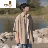 YANXU卡其色短袖衬衫男夏天薄款港风潮牌cityboy日系小众慵懒半袖外套