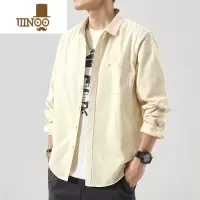 YANXU衬衫外套男士日系卡其色简约长袖衬衣寸初秋休闲口袋尖领工装
