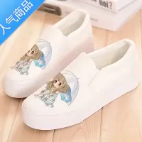 SUNTEK布鞋手绘厚底鞋黑白色一脚套懒人鞋帆布鞋女韩版休闲鞋夜光小白鞋