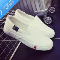 SUNTEK韩国小白鞋黑白色帆布鞋女韩版懒人鞋学生布鞋厚底乐福鞋休闲板鞋