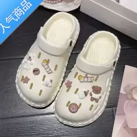 SUNTEK白色休息鞋女款懒人鞋豆豆鞋包头半拖鞋乐福鞋洞洞鞋2023新款外穿