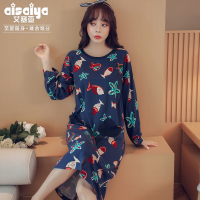 艾塞亚可爱公主长袖睡衣秋季中长款睡裙女士宽松裙子家居服连衣裙