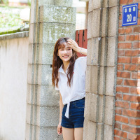 2017新款瞌睡兔随心搭配棉质亲肤字母刺绣LOGO打结短袖衬衫女夏2017新款