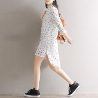 森系小清新树叶印花前短后长连衣裙中长款文艺长袖宽松棉质衬衫裙