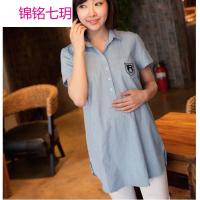 锦铭七玥韩版时尚 孕妇装 夏 短袖绣标棉质孕妇衬衫 宽松孕妇上衣150