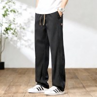 男士夏季冰丝裤子薄款宽松直筒垂坠感西裤松紧腰速干运动休闲长裤