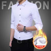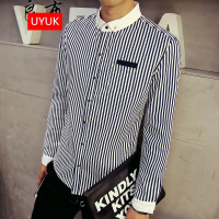 UYUK长袖条纹衬衫男士韩版修身免烫休闲衬衣冬季加绒加厚寸衫保暖上衣