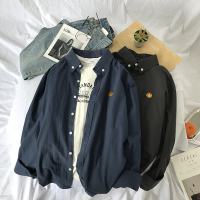 2017秋季新款休闲棉麻透气翻领长袖衬衣笑脸刺绣男韩版衬衫青少年