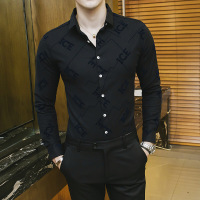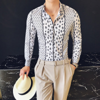 UYUK秋冬季新款男士长袖加绒碎花衬衫青年修身韩版时尚衬衣发型师潮流工作服图色