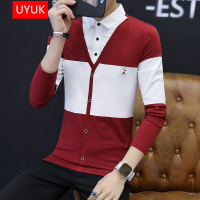 YANXU秋季网红新款毛呢衬衫领假毛衣男韩版潮流轻熟风针织衫外套潮