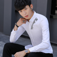 UYUK2017秋冬装新款发型师个性挂饰衬衫韩版男士纯色百搭修身工作服潮