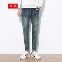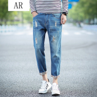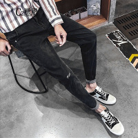抽绳牛仔裤男夏季薄款直筒松紧腰九分宽松阔腿潮流休闲裤
