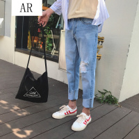 潮牌牛仔长裤男美式复古水洗做旧裤男士宽松直筒阔腿裤工厂直供