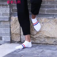 锦铭七玥秋季男士薄款短袜两条杠船袜全棉束腰时尚白袜潮吸汗防臭青