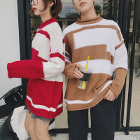 情侣毛衫男冬季2017新款青少年毛衣韩版潮宽松圆领套头学生毛线衣
