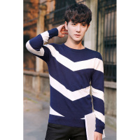 秋冬季男士毛衣圆领套头青年针织衫学生韩版条纹线衣男装毛衣男