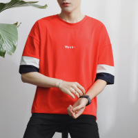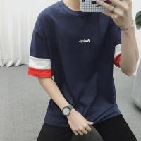 2017新款夏季新款短袖男士日系简单修身圆领T恤男英文绣花学生青年潮