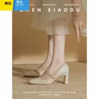 聚范新款法式方头粗跟单鞋小香风晚晚旗袍高跟鞋女复古白色玛丽珍皮鞋