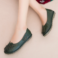 手工民族风复古女鞋春秋百搭平底中老年妈妈鞋真皮软底平跟单鞋女