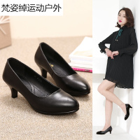 2017秋新款真皮细跟工作鞋黑色中跟浅口尖头皮鞋职业女鞋大码单鞋