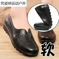 春秋妈妈鞋真皮软底防滑平跟老人皮鞋女中老年鞋女单鞋子2017新款