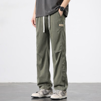 军绿双抽绳工装裤男贴标装饰直筒裤春夏透气休闲长裤_286