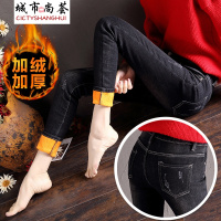 女裤冬款加绒弹力牛仔裤女松紧腰长裤女加厚保暖铅笔裤