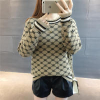 2017秋冬新款韩版宽松长袖针织衫领撞色菱形套头衫打底衫女毛衣