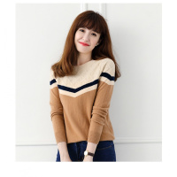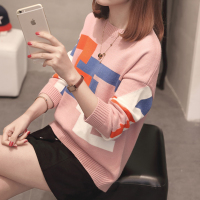 2017新款冬季宽松女毛衣短款时尚拼色针织打底衫长袖百搭学生装潮