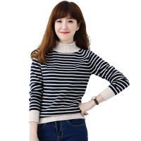半高领羊绒衫女套头短款修身条纹女毛衣加厚羊毛打底衫秋冬新款如图