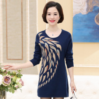新款秋装针织打底衫中长款圆领套头中年女毛衣连衣裙长袖潮