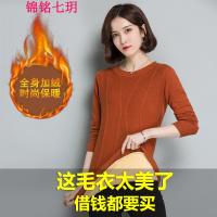 锦铭七玥保暖内衣加厚加绒女毛衣中长款紧身针织打底衫秋冬套头修身上衣