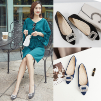 豆豆鞋女秋鞋绒面方扣平底大码女鞋春季40 41-43春鞋单鞋钻扣瓢鞋