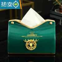 敬平抽纸盒客厅家用轻奢北欧纸巾盒美式创意餐巾盒欧式陶瓷纸抽盒 合金鹿头绿色款