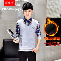 UYUK 2017冬季新款假两件保暖衬衫男加绒加厚青年时尚休闲套头毛衣男士保暖衬衣
