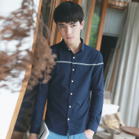莞馨(wanxin)秋季新日系文艺男撞色针织条装饰长袖衬衫青年男纯色休闲衬衣