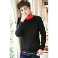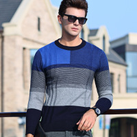 2017冬季新款男士毛衣中青年时尚拼色圆领男式长袖羊毛衫保暖上衣