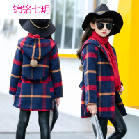 锦铭七玥童装女童呢子大衣秋冬装2017新品中大童韩版格子连帽毛呢加厚外套