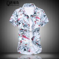 步来褶惠夏季男士加肥加大码印花短袖衬衫丝光棉碎花衬衣胖子男装花寸衫潮夏