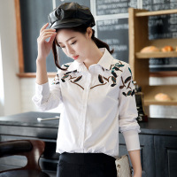 莞馨(wanxin)白衬衫女长袖2016春秋新款女装印花上衣韩版大码刺绣棉打底衬衣潮