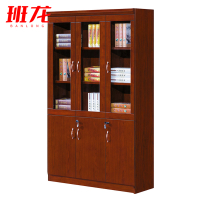 易企采 三门书柜办公文件柜木质办公室柜子油漆贴皮资料柜档案柜财务带抽屉锁书柜