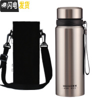 三维工匠大容量便携保温杯304不锈钢真空茶杯水杯600户外男女带滤网1000 钢本色1100(送杯套)