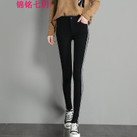 锦铭七玥迈2018春秋新款黑色条纹打底裤女外穿百搭弹力小脚紧身长裤女