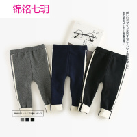 锦铭七玥弟弟一件代发ins婴幼儿爆款纯色条纹加绒打底裤