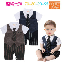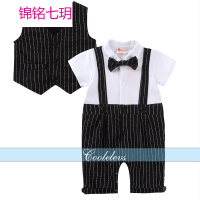 锦铭七玥ins爆款婴童装绅士短袖哈衣夏 条纹马甲婴儿连体衣男童装