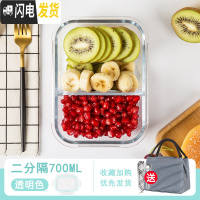 三维工匠玻璃饭盒上班族专用微波炉加热便当盒分隔密封带盖冰箱保鲜碗 透明色-两分隔700+藏青包F送餐具