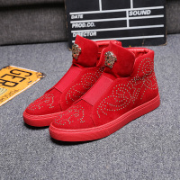班尔(BANER)冬季中邦男靴子红色高帮鞋男韩版短靴休闲潮流板鞋男士套脚懒人鞋