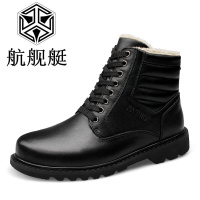 冬季新款男靴子韩版雪地靴男保暖加绒男士棉鞋潮流大小码男马丁短靴高帮鞋黑色
