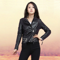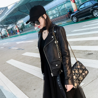 2017秋冬新款真皮机车夹克短款立领拉链显瘦海宁绵羊皮皮衣外套女