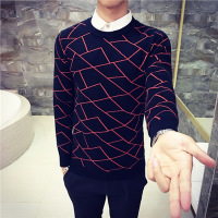 莞馨(wanxin)新款秋季男士毛衣韩版圆领套头针织衫青少年新款线衣潮流男装格子毛衫